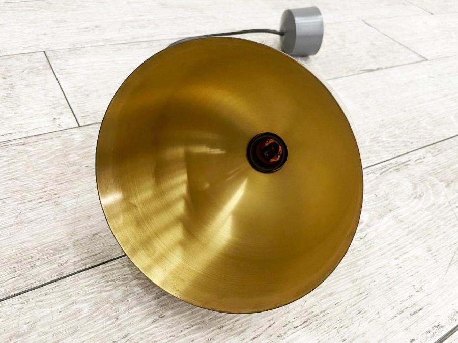 奈良に拠点を置く、ライティングデザイナー2人が手がける照明ブランド「NEW LIGHT POTTERY (ニューライトポタリー)」より、鋳造した真鍮を削りだした重量のあるペンダント『Bullet round shade/ バレットラウンドシェード』です。