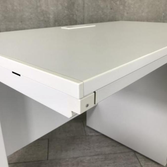 - 机の角がシャープなので、隣り合うデスクがフラットにつながります。すっきりとしたデザインです。
