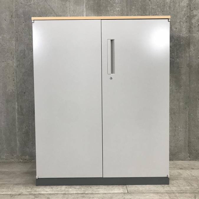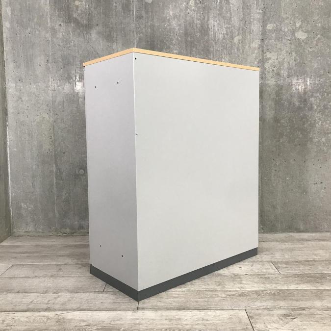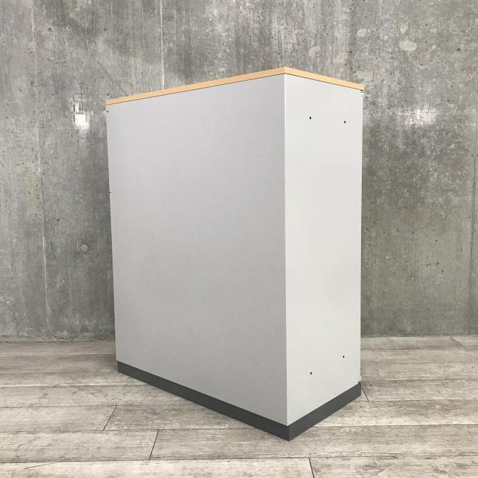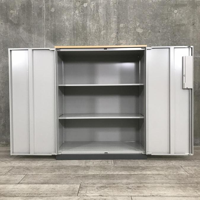 両開き低書庫に天板付きなので上にインテリアやカタログやマニュアル等々物を置きやすい設計です。
