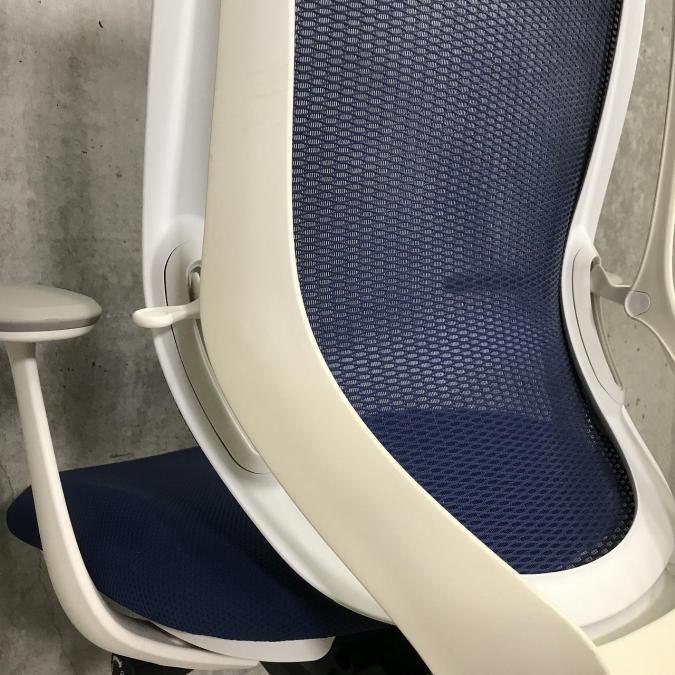 【大人気シリーズ、シルフィーが入荷】■オカムラ シルフィー ブルー ホワイトフレーム 固定肘 ハイバック 前傾姿勢【フレーム部分に日焼け有】サーキュラーバリューCO2削減量の算出について