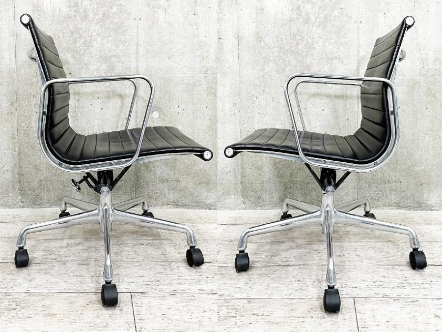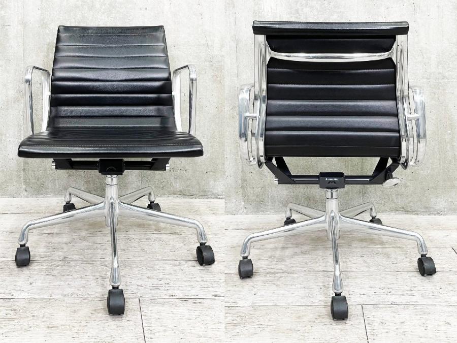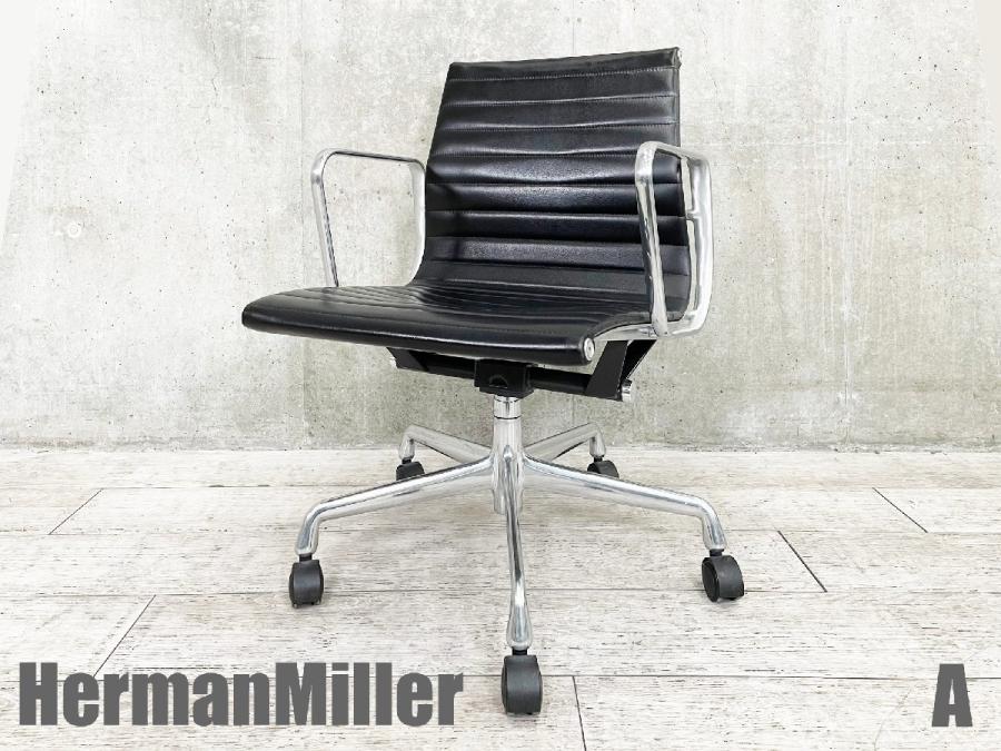 A)HermanMiller/ハーマンミラー イームズ アルミナムチェア ローバック ブラック 本革在庫がある店舗一覧