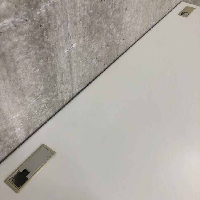 - 天板にコードホールが2ヵ所あり、レイアウト自在です。天板と幕版の間に30mmのすき間があり、対向配線も容易です。