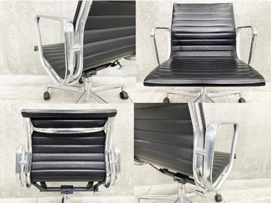 B)HermanMiller/ハーマンミラー イームズ アルミナムチェア ローバック ブラック 本革在庫がある店舗一覧