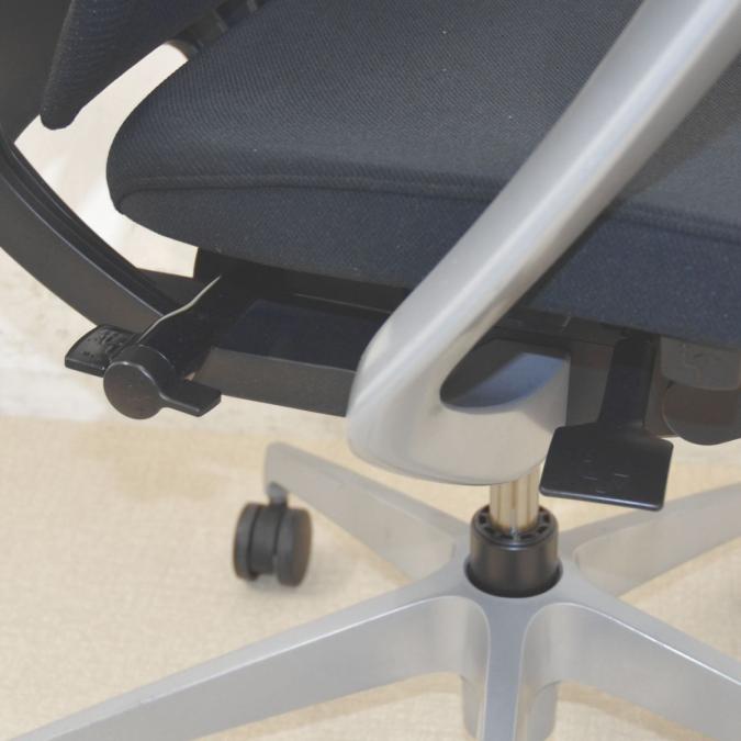 - 座面下のレバー操作により、座面を50mmのストローク(16.7mmピッチ)で好みの位置に調節できます。体格や作業姿勢に合わせたポジション設定が行えます。