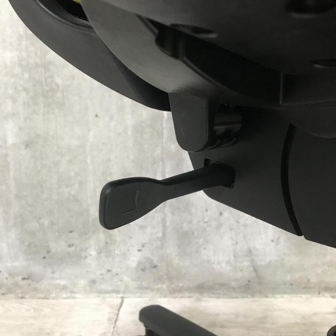 (ファブリック) - レバーを上下させることで、内蔵されたランバーサポートプレートの押し出し量を2段階(15㎜)切り替えることができます。
