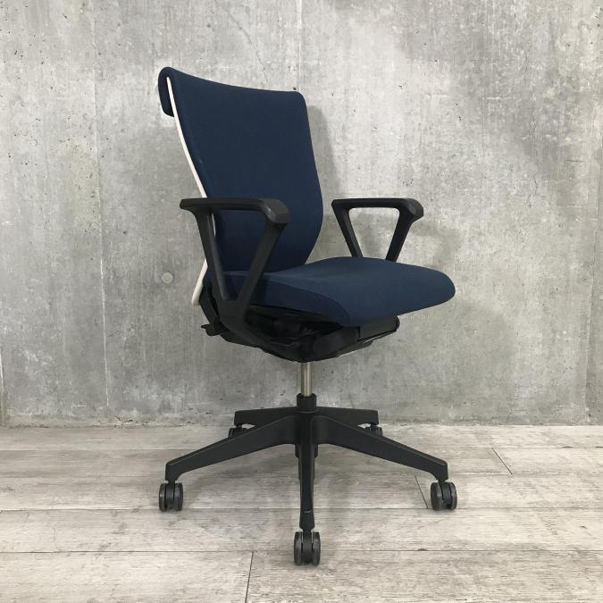 【ディテールの上質感・ワーカーの体格に合わせた最適な座り心地を実感!】■イトーキ(ITOKI) コセールチェア (coser) ローバック 肘付き ■可動肘 ■ネイビーブルー オフィスバスターズ東大阪店