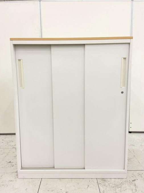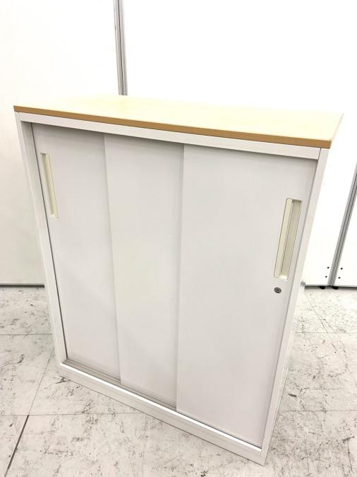 【カウンターとしてもおすすめ!】木目の天板付きの3枚引違い書庫が入荷!ナチュラルカラーのデスクにも合います! ■内田洋行/HS/ホワイト・天板ナチュラル- 立川・八王子店