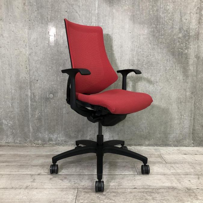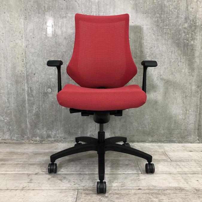 【三次元フォルムが腰にフィット!】■イトーキ製 エフチェア ラズベリーレッド ■長時間のパソコン作業にもオススメ!- 千葉店