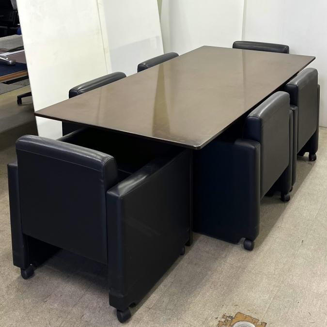 【訳アリ品】応接セット入荷!ウチダ 応接セット テーブル/ブラウン チェア/ブラック/キャスター付- なんば日本橋店