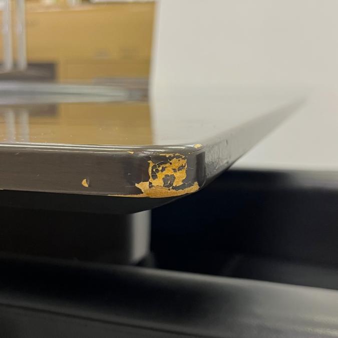 テーブル天板の傷やチェアの革生地のひび割れなど使用感が感じられます。