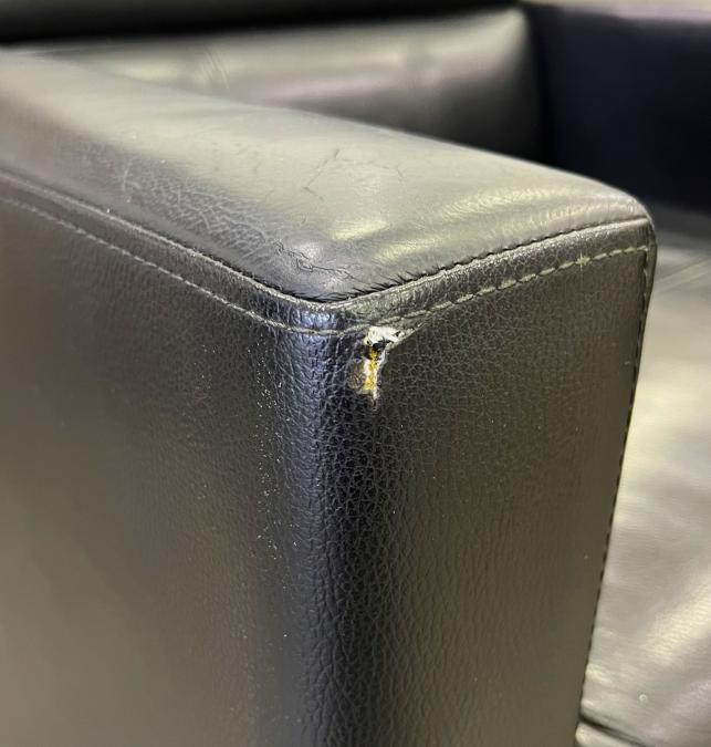 - あり黄ばみ・変色が広い範囲にうっすらある、または濃い黄ばみ・変色が一部ある。(例:三人用ソファ、二人用ソファ、一人用ソファの場合、背もたれ、肘かけ、座面等、 センターテーブルの場合、天板、脚にある。)