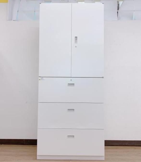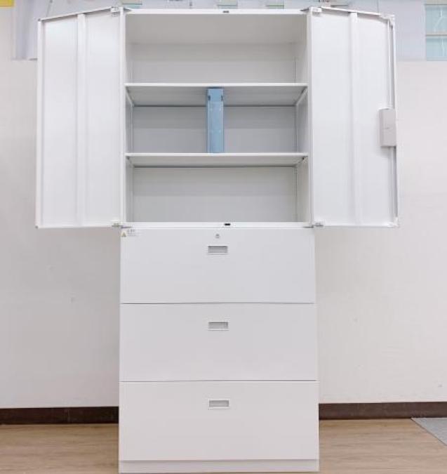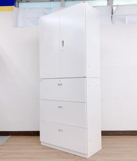 【在庫お探しいたします!/予約依頼商品】イトーキ製のハイキャビネット(両開き書庫+3段ラテラル書庫)【シンラインシリーズ/ホワイト色】 *良品を格安で!「オフィスバスターズ福岡南店」は、福岡を拠点として、全国へ中古オフィス用品・オフィス家具を提供しております