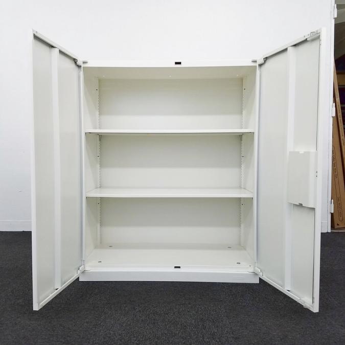 定番サイズ オカムラ/レクトラインシリーズ カラー:ネオホワイト 両開き書庫 鍵付き シリンダー錠 天板無し