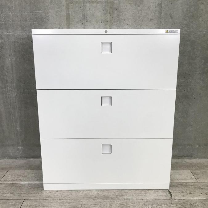 【オフィスの必需品!大容量の三段キャビネット!】■オカムラ(okamura)製 レクトラインシリーズ 3段ラテラル ローキャビネット ■ベース付 ■シリンダー錠 ■ホワイト 【弊社使用欄:A01037187】