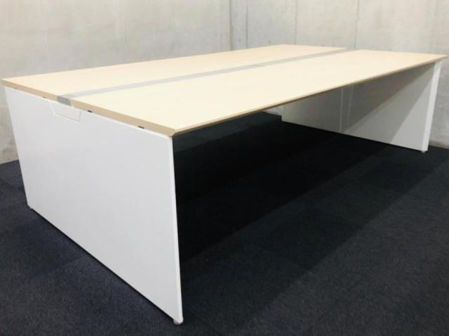 【倉庫在庫品】新しくオフィス開設時にいかがでしょうか!? フリーアドレスデスク 幅2400㎜ ■色:ナチュラル(木目調)- 千葉店