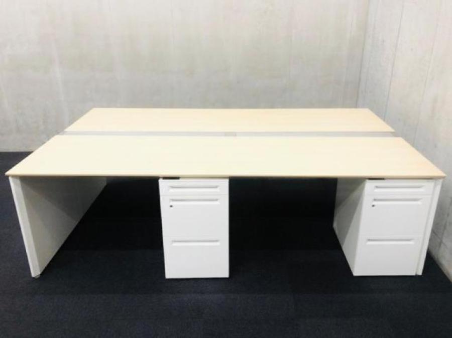 【倉庫在庫品】【W2400】/フリーアドレスデスク/オカムラ/フリーウェイ/天板ナチュラル/4名使用想定 中古 レイアウト 起業 移転 オフィスバスターズ東大阪店