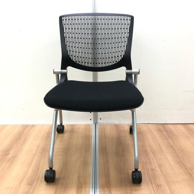 【会議・打ち合わせにおすすめです!】ネスティングチェア オカムラ グラータ ブラック 【使わないときは収納可能!】- 足立・葛飾店