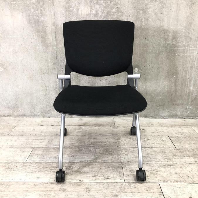 【在庫入替セール品!】【会議・打ち合わせにおすすめです!】ネスティングチェア オカムラ グラータ ブラック 【使わないときは収納可能!】- 足立・葛飾店