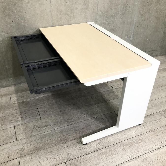 【関西倉庫在庫】■コクヨ(KOKUYO)製 iSシリーズ 平机 引き出し付き ■天板:木目ナチュラル/本体:ホワイト 【弊社使用欄:A01035359】