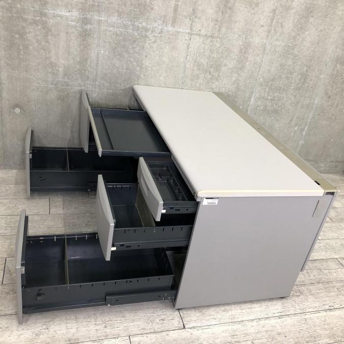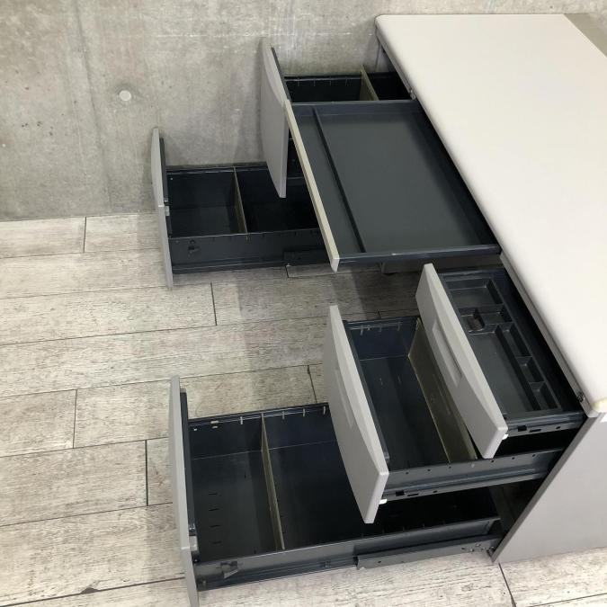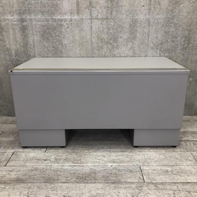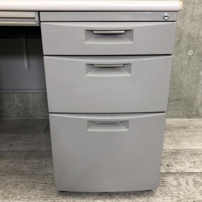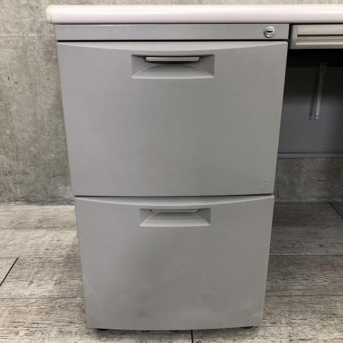 汚れが目立ちにくいグレー色の両袖机。