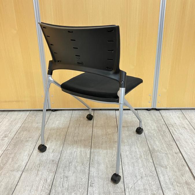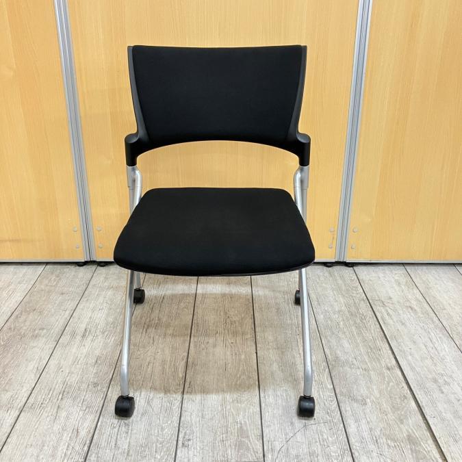 【関西倉庫在庫品】【平行に重ねて省スペース!使い勝手抜群のミーティングチェア!】■イトーキ マノスシリーズ ネスティングチェア 座ブラック 背ホワイト キャスター付【ITOKI Manos】【W】