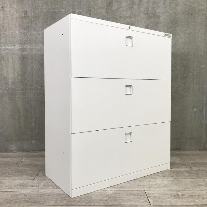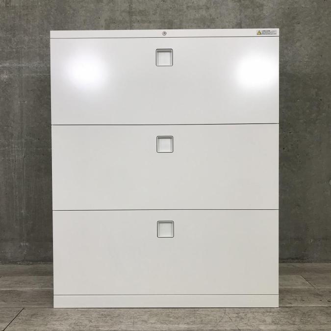 ☆人気のセパレートロックタイプ!【個人用ロッカーとしてもオススメ!】■オカムラ レクトラインシリーズ 3段ラテラル書庫 ホワイト天板付 各段施錠タイプ ■Okamura Rectline】