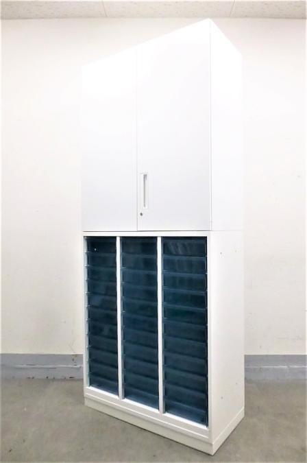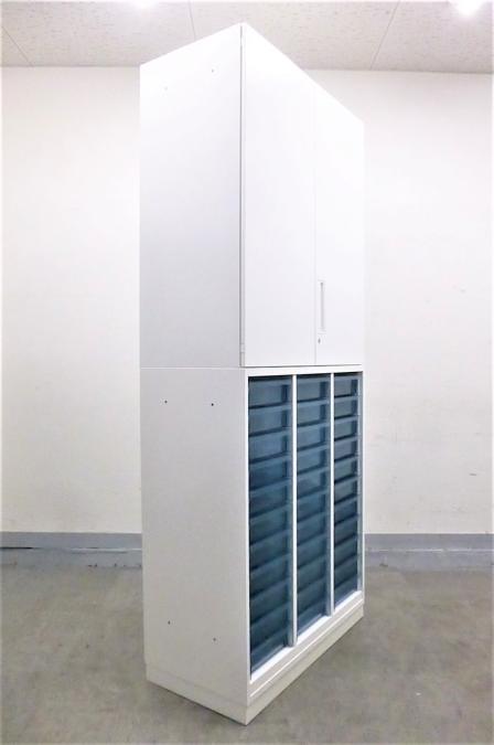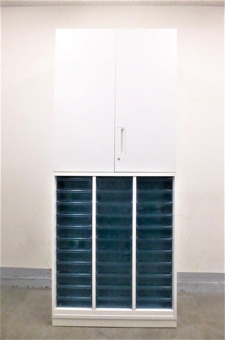 【書類の小分けに便利なクリスタルトレーと両開きタイプのコンビ!】■コクヨ製 エディア 上下書庫セット(上:両開き 下:クリスタルトレー)ホワイト 《オフィスバスターズ福岡博多店は、福岡を拠点として、日本全国へ中古オフィス用品・オフィス家具を提供しております》