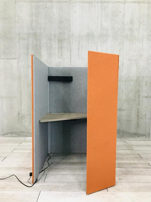 視線を遮り、音を和らげる吸音パネルに包まれながら働く。その新しい感覚をぜひご体感ください!