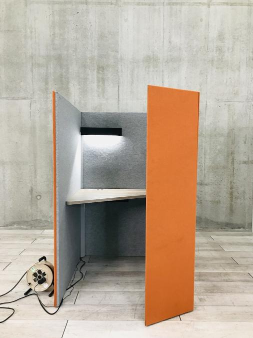 【吸音パネルがワーカーを包み込む ミニマムサイズのワークブース】