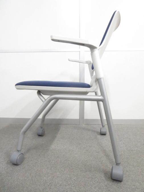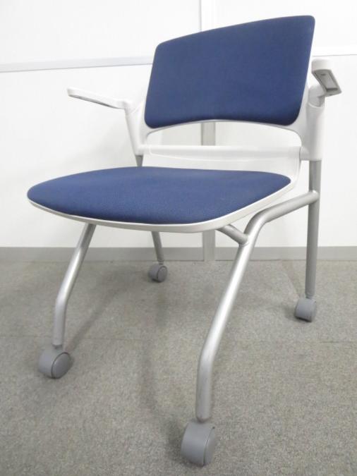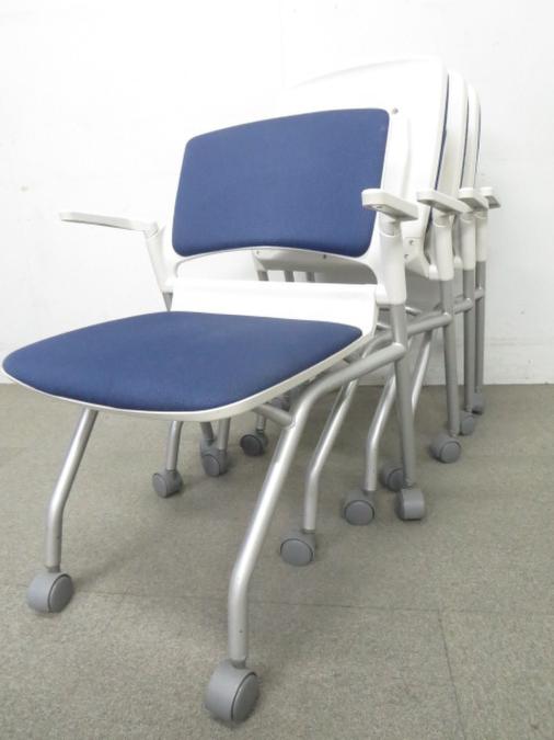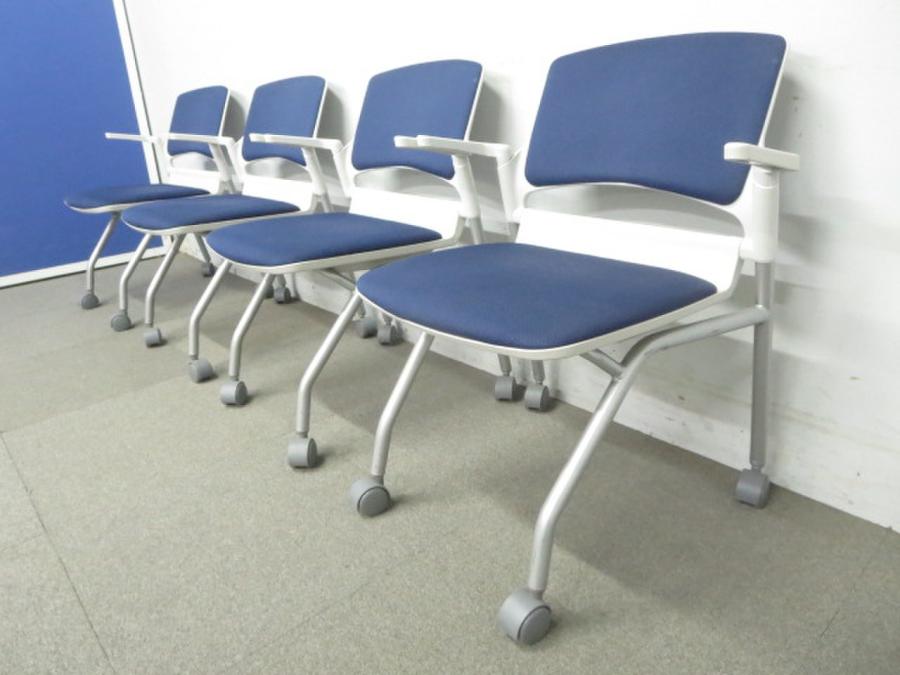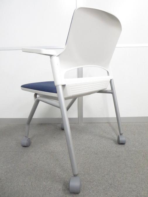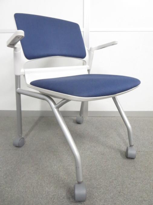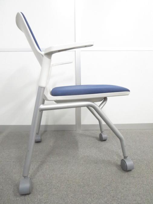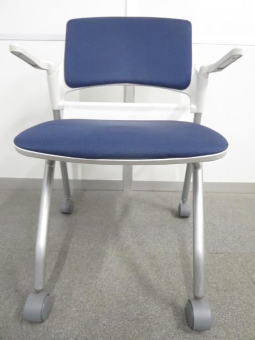 【在庫入替セール】【ミーティング用に最適のキャスター付きネスティングチェア!シンプルなデザイン!】■ウチダ (UCHIDA)製 MF-180シリーズ ネスティングチェア ■キャスター付 ■レイズンブルー ×ホワイトシェル【K9】
