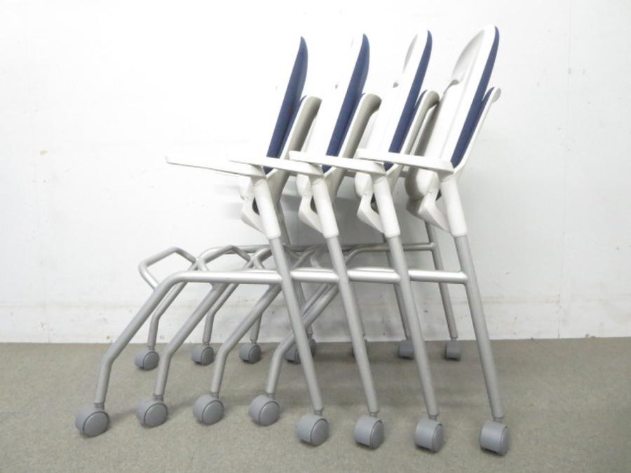 【キャスター付きで使いやすい!ミーティングに最適!】■ウチダ(UCHIDA)製 MF-180シリーズ ネスティングチェア ミーティングチェア ■キャスター付き ■ブルー×ホワイトシェル