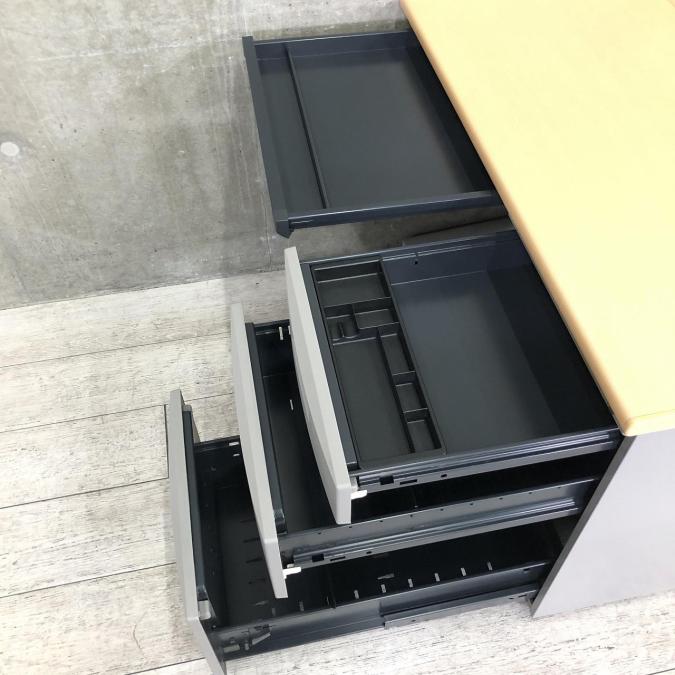 袖は計3段で真ん中、最下段はA4ファイルが収納可能です!