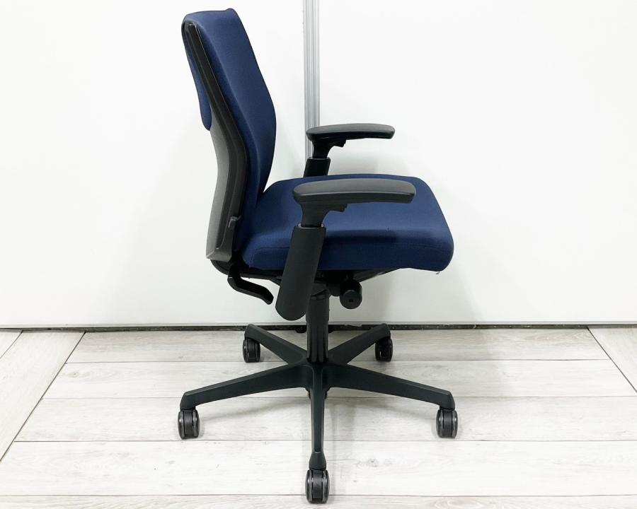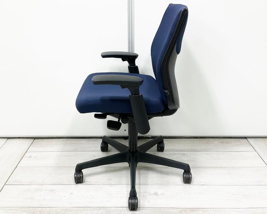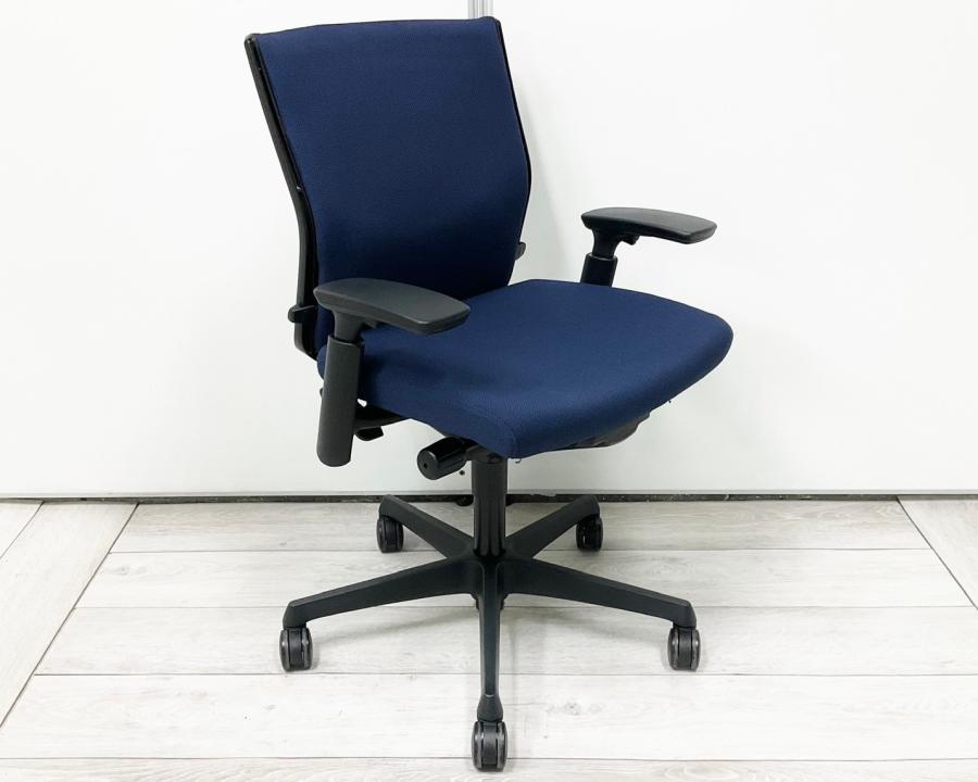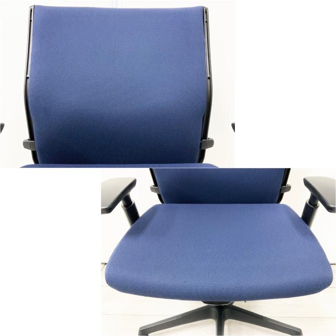 【関西倉庫在庫】■オカムラ(okamura)製 エスクードチェア 肘付ローバックチェア ■ダークブルー×グレーシェル ■デザインアーム ■ランバーサポート 【弊社使用欄:A01029268】