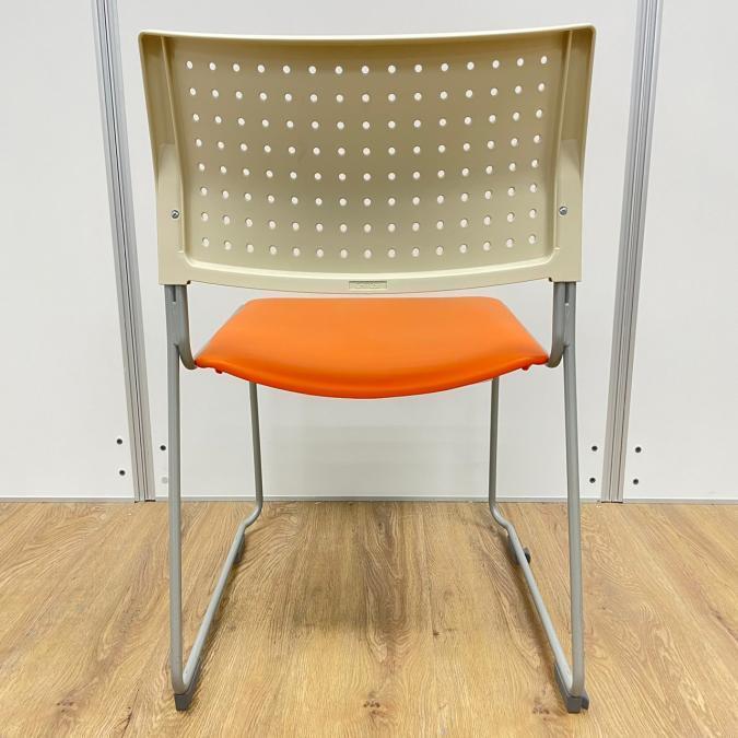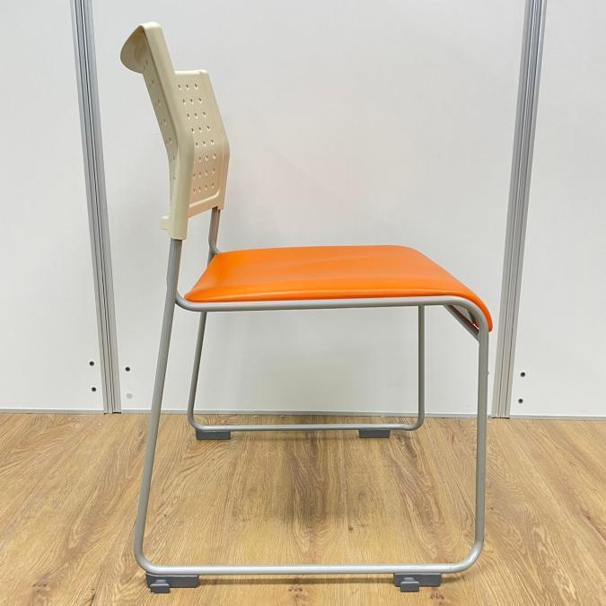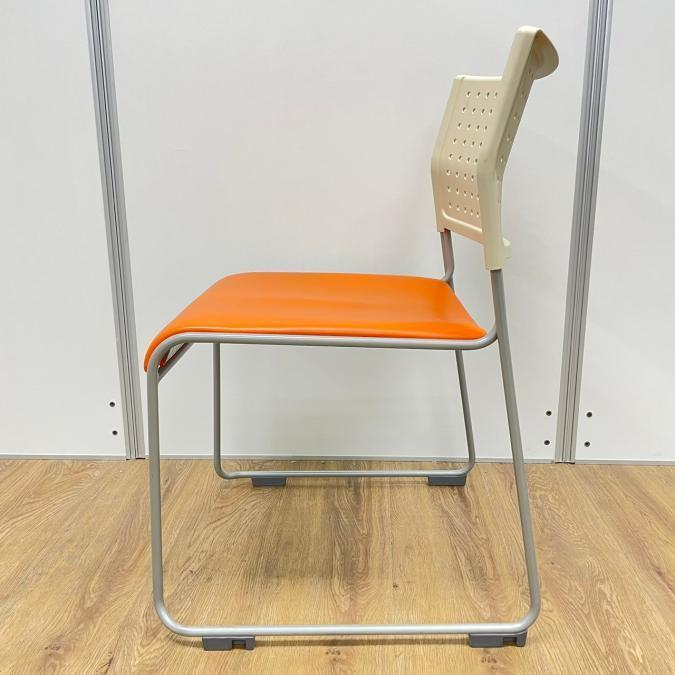【在庫入替セール】【4脚1セット】アイリスチトセ製 オレンジカラー 汚れてもすぐ洗えるビニール生地 スタッキングチェア!!- 京都東寺店