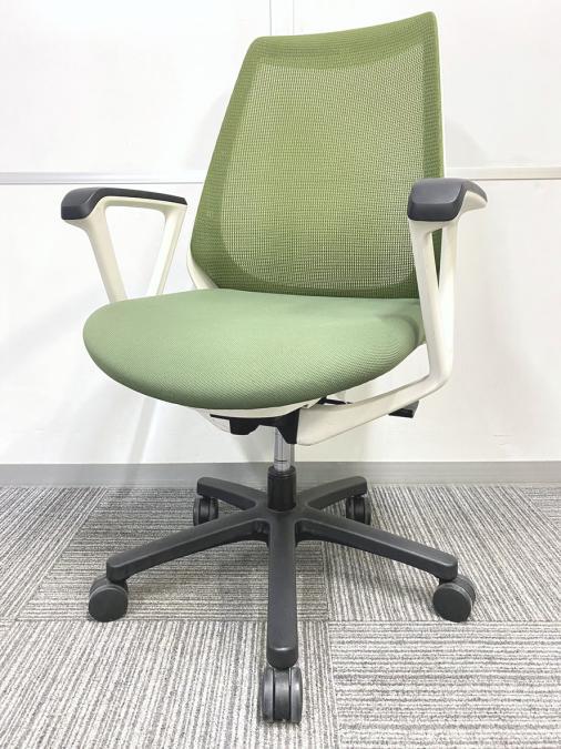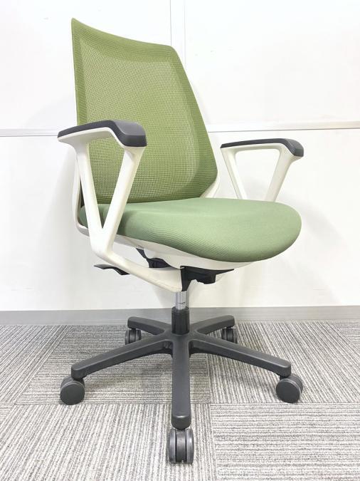 【長く座っても疲れにくい!】■イトーキ製 ノナチェア 肘付 モスグリーン ■腰部を支えるホールド感! A00903711- 川崎店