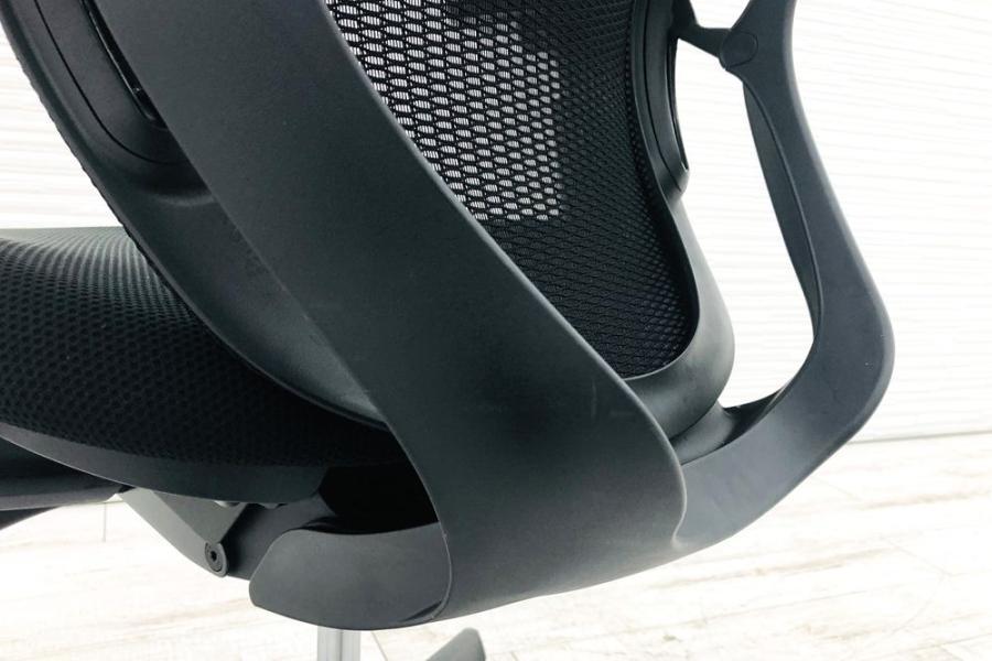 【限定1脚】【三次元曲面が身体にフィット!前傾チルト機能付き大人気メッシュチェア!】■オカムラ(okamura)製 シルフィーチェア(Sylphy) 肘付きハイバック ■背面メッシュ ■可動肘 ■ブラック×ブラックシェル ■ランバーサポート付き