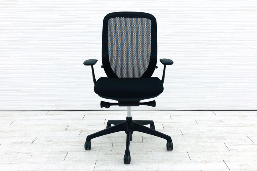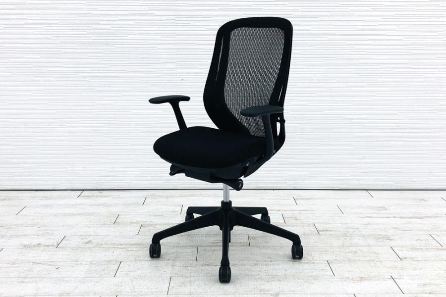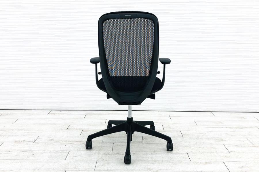 【限定1脚】【三次元曲面が身体にフィット!前傾チルト機能付き大人気メッシュチェア!】■オカムラ(okamura)製 シルフィーチェア(Sylphy) 肘付きハイバック ■背面メッシュ ■可動肘 ■ブラック×ブラックシェル ■ランバーサポート付き