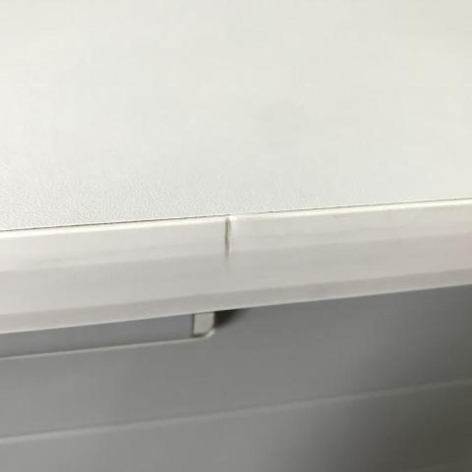 - あり黄ばみ・変色が広い範囲にうっすらある、または濃い黄ばみ・変色が一部ある。(例、天板、幕板、棚板、サイド部分、脚部等にある。)