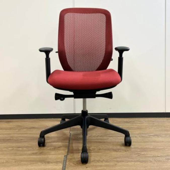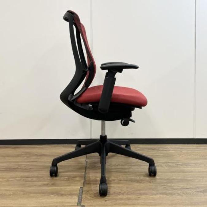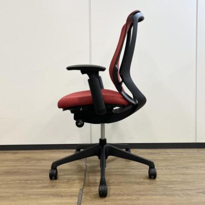 【前傾チルト機能付き】【オカムラ製品で最も人気を集める高機能メッシュチェア!】■オカムラ(okamura)製 シルフィ(Sylphy)チェア 肘付き ハイバック 背面メッシュ ■可動肘・ハンガーなし ■レッド×ブラックシェル【弊社使用欄:A01040841】