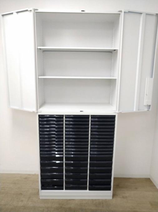 両開き書庫とクリスタルトレイキャビネットの上下セット商品になります!