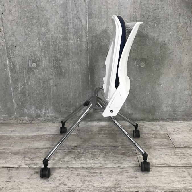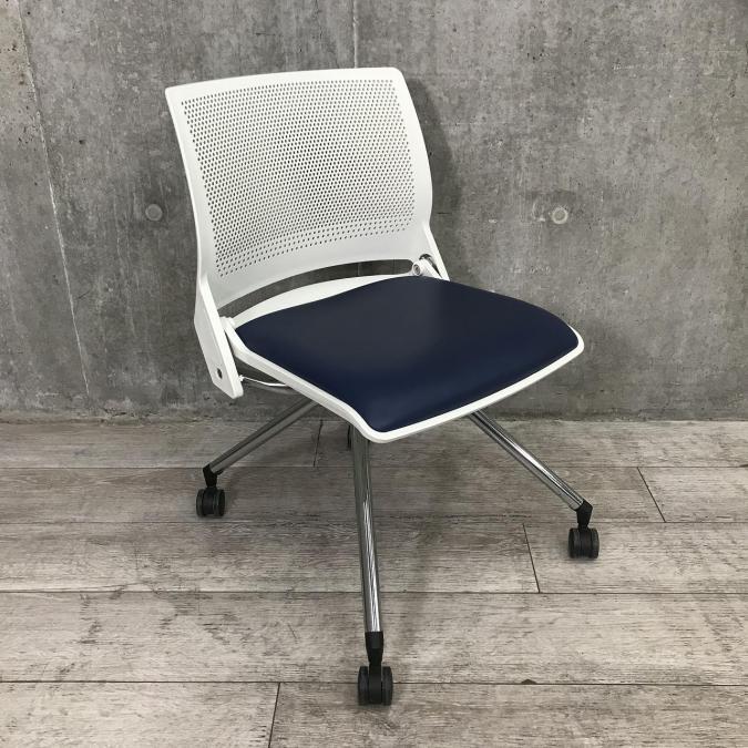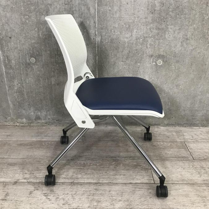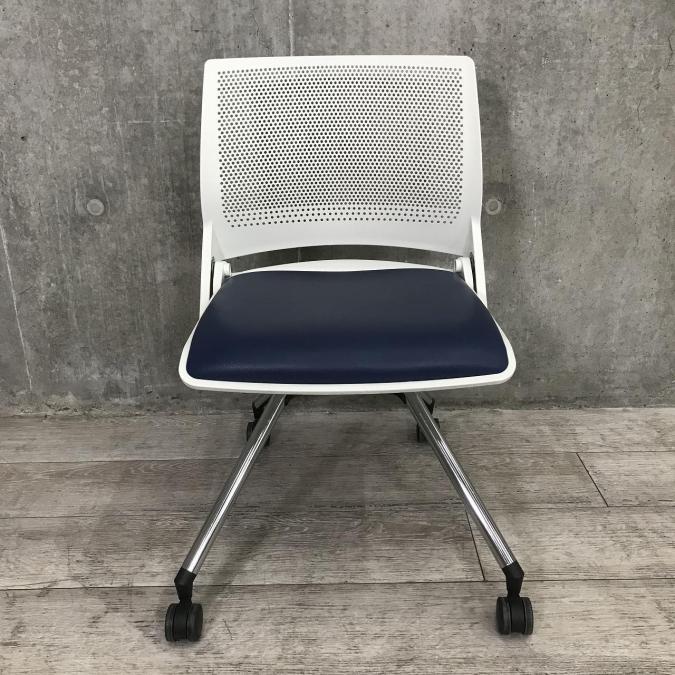 【在庫入替セール(本在庫限定価格)】【スタイリッシュなデザイン!】■オカムラ製 クリールシリーズ ネスティングチェア 座ブルー(ビニールレザー) A00928087- 川崎店