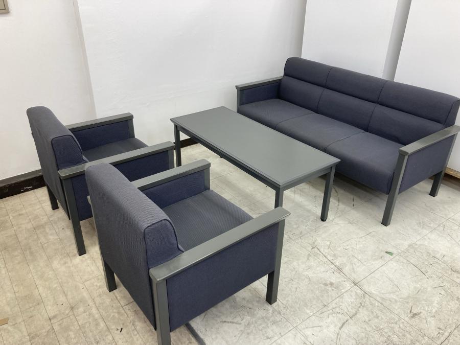 【使用感有ですがまだまだ使えます!】応接セット!/3人用ソファー×1/1人用ソファ×2/センターテーブル×1/グレー- 春日部・越谷店