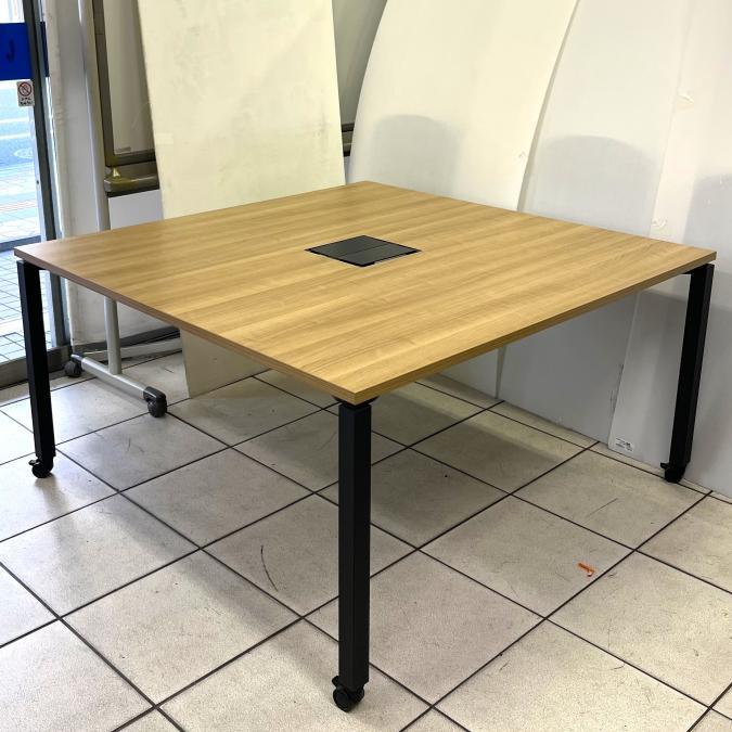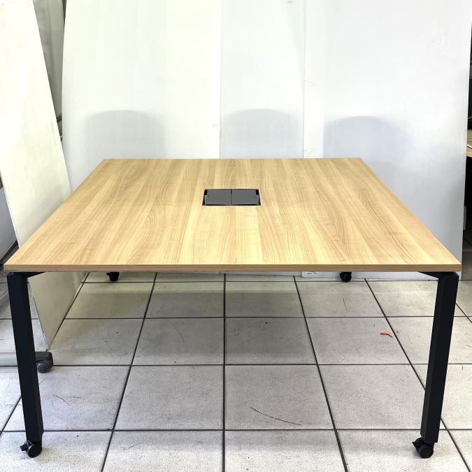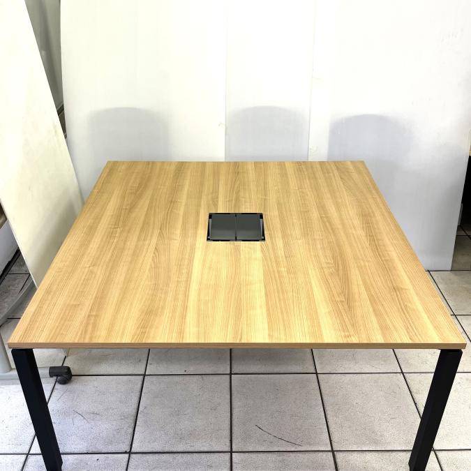 【在庫セール品・2台限定】【T12】■コクヨ製 ワークフィット ミーティングテーブル W1200×D1400㎜ ■配線カバー付き ■木目ナチュラル【配線カバー付きなのでデジタルツールを用いた会議にオススメ!】