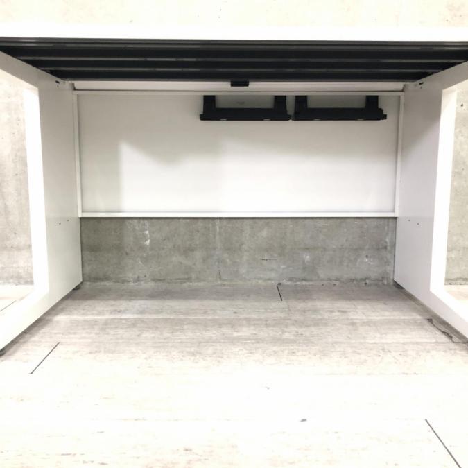 - 対向配線も横配線も自在なケーブリングが可能。幕板内側に余長ケーブルやOAタップを収納できる配線ダクトを標準装備。