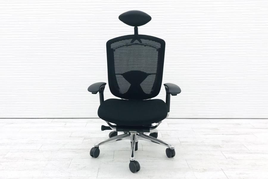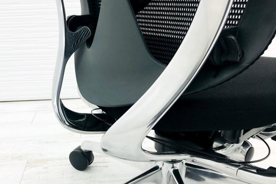 【メッシュチェアの最高峰!】■オカムラ製 コンテッサチェア(Contessa)ヘッドレスト付 ブラック ■高級感を演出するポリッシュフレーム【OI】倉庫在庫品- つくば店
