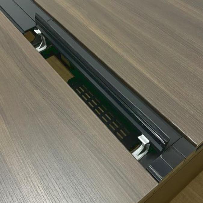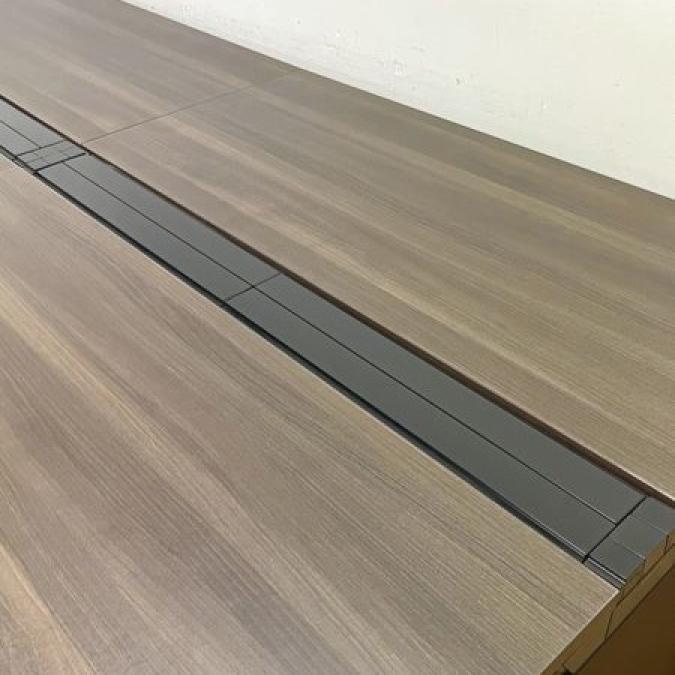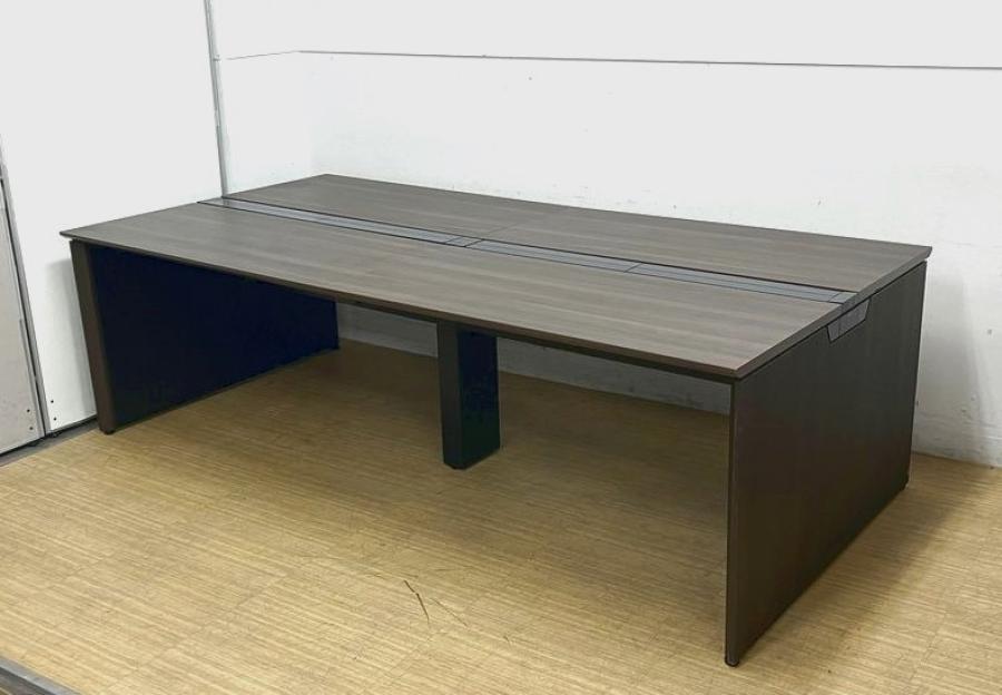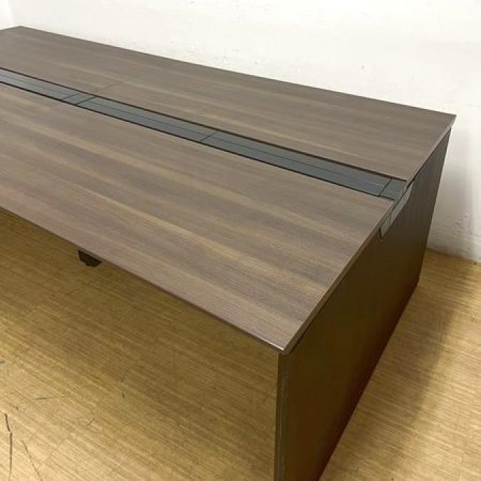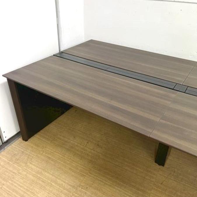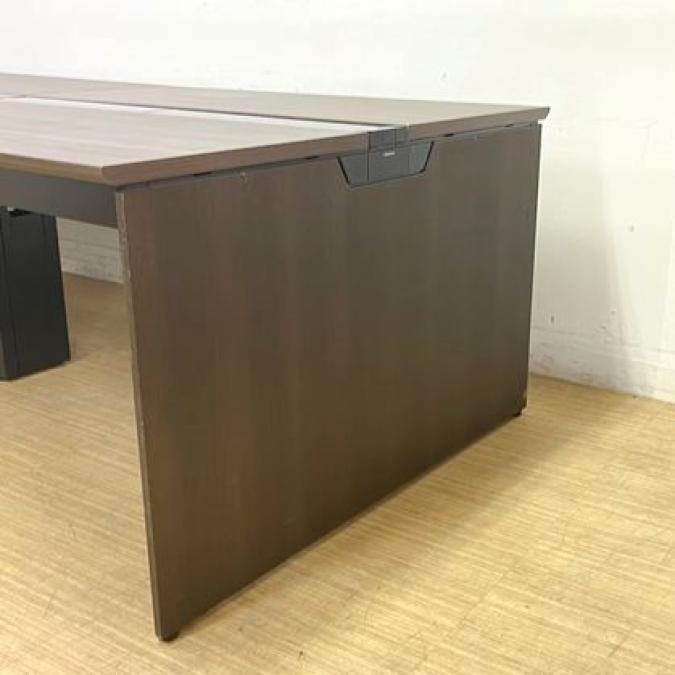 【当店限定 脚まで木目調のレア仕様】フリーアドレスデスク オカムラ フリーウェイ プライズウッドダーク(MX63)×ブラック W4800 D1200 8名使用想定- 名古屋千種店