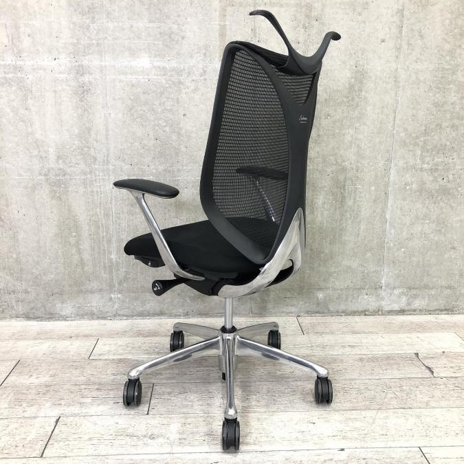 【1脚入荷!!】前傾チルト付!流れるような美しいフォルム!最高級メッシュチェア■オカムラ(okamura)製 Sabrina(サブリナ) ハイバック 可動肘付き ■ブラック【しなやかに、しっかりフィット】【AD】