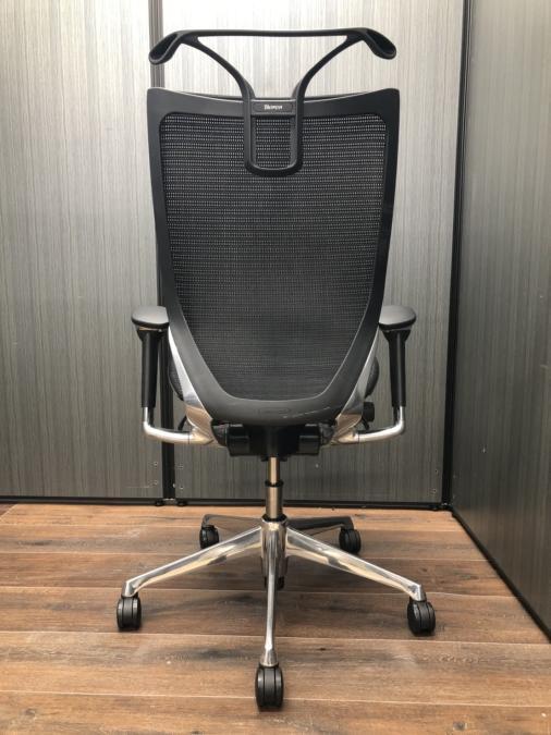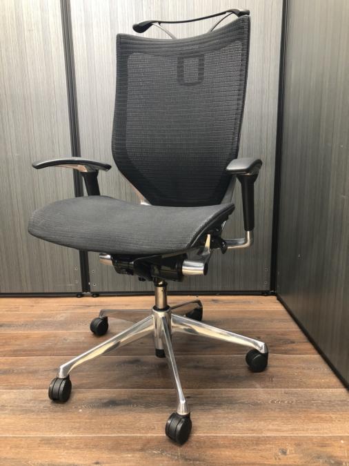 【2018年製】オカムラ バロンチェア エクストラハイバックモデル 座:メッシュ 背:メッシュ シルバーフレーム アジャストアーム 可動ヘッドレスト搭載 ※座面ヨレあり