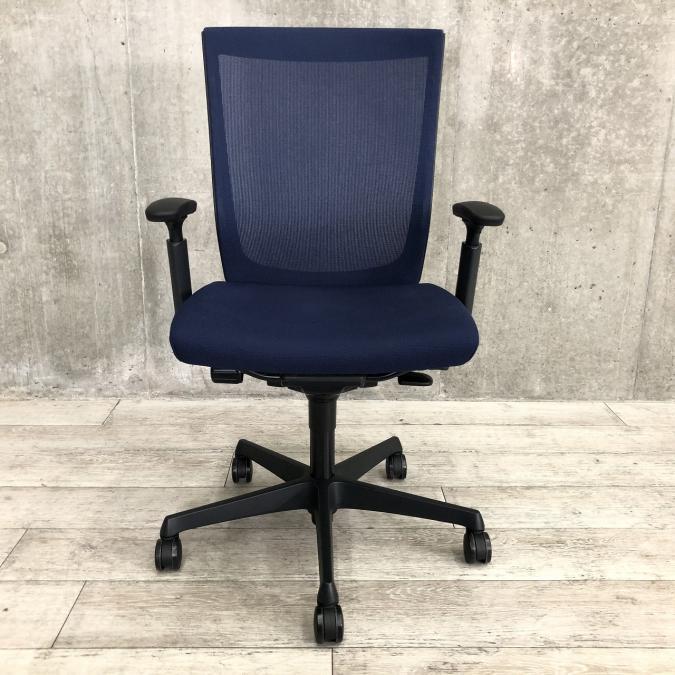 【スタンダードチェア!】■オカムラ/エスクードメッシュ/ネイビー 可動肘 ハイバック- 池袋店