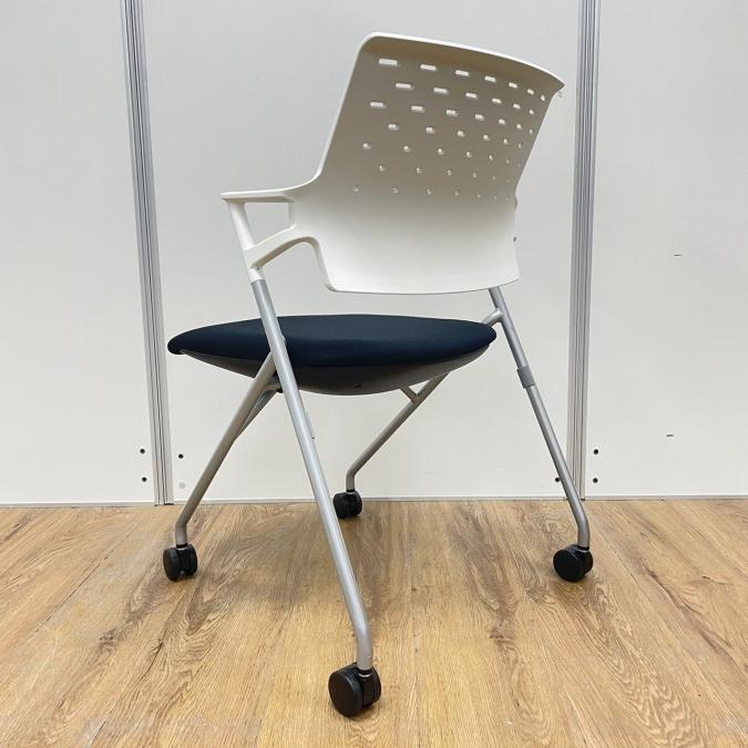 【6脚セット!!】コクヨ製 ピエガシリーズ ブラックxホワイトのツートンカラー 会議用チェアの定番シリーズ ネスティングチェア!!- 京都東寺店